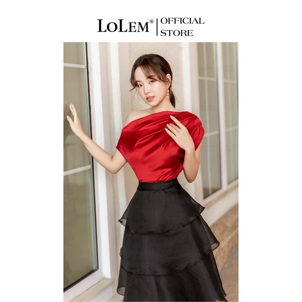 Áo kiểu trễ vai LOLEM AK1280 vải lụa crep nhẹ mềm mịn